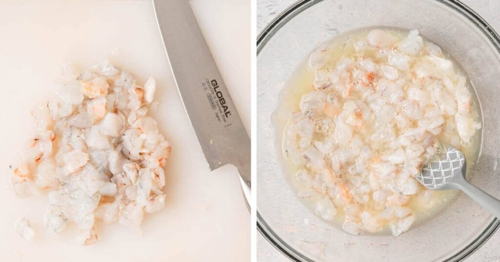 鱼肉用醋生腌前(左)后(右)对比