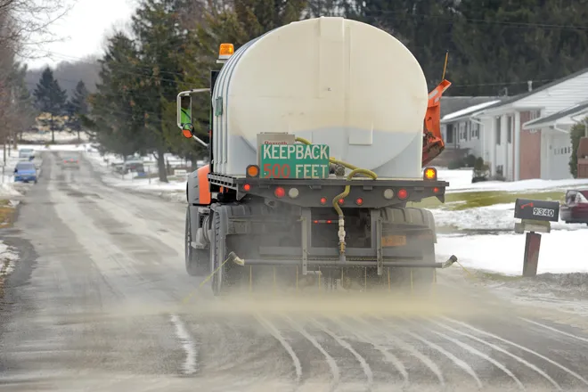 美国冬季路政车撒盐除冰